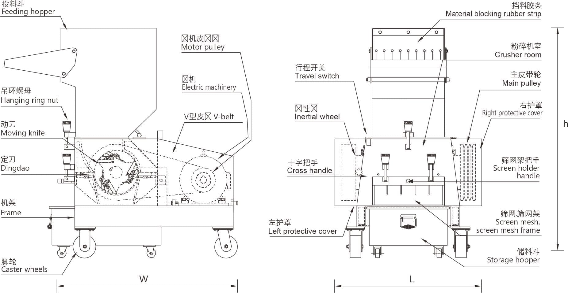 with double-silencer to achieve low noise. - Feeding hopper and screener need to be made of stainless steelin order to avoid painting peeling